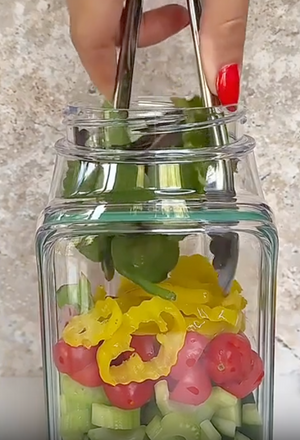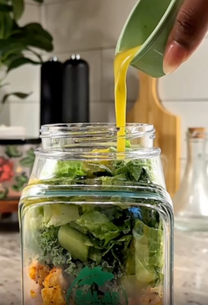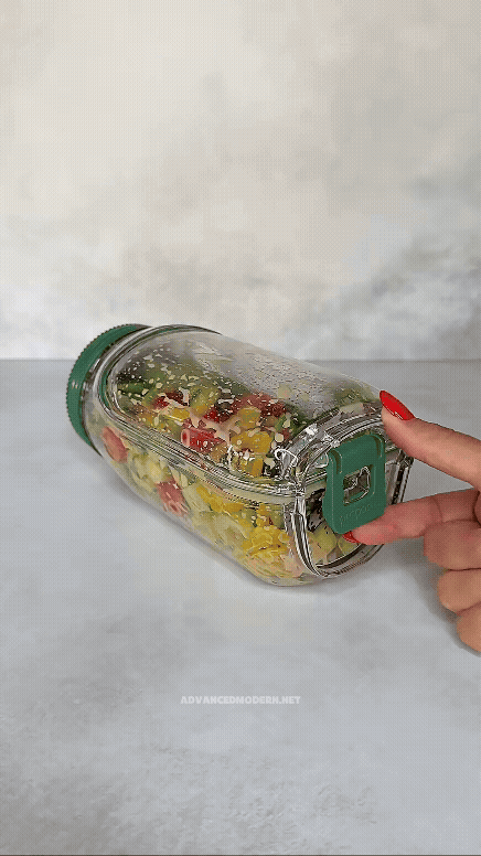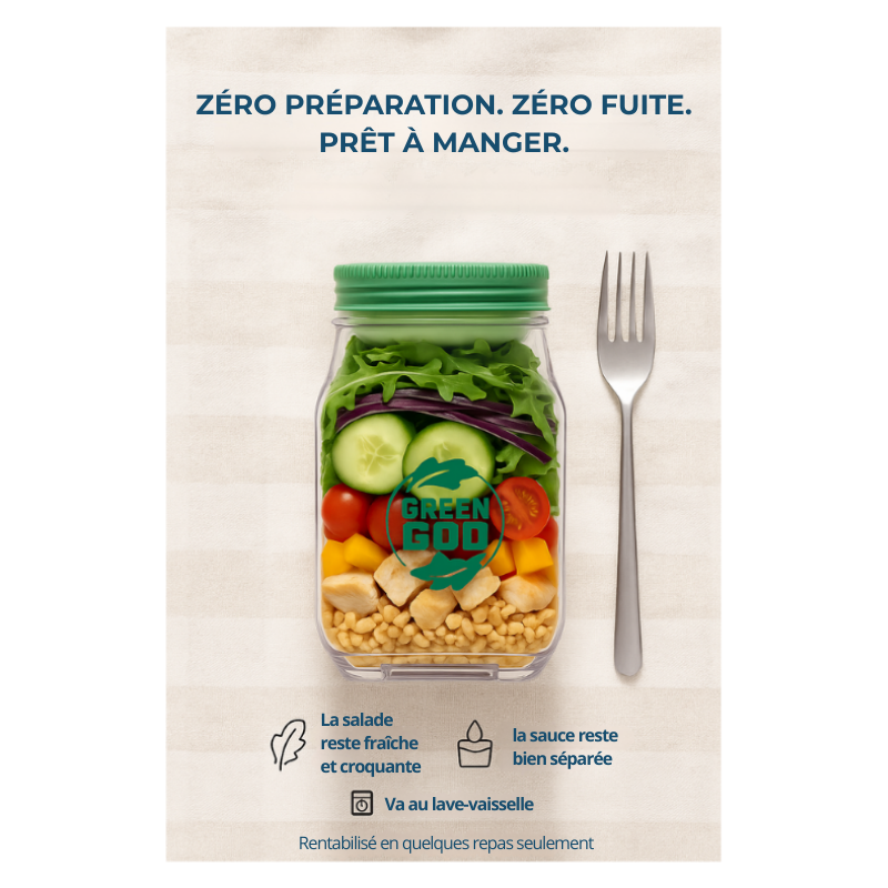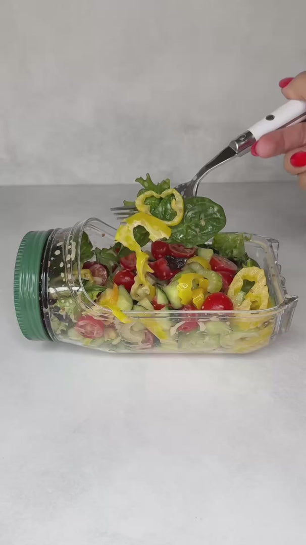 Le design à couches verticales sépare les ingrédients, évitant qu’ils ramollissent, et les garde frais et croquants jusqu’au moment de déguster.